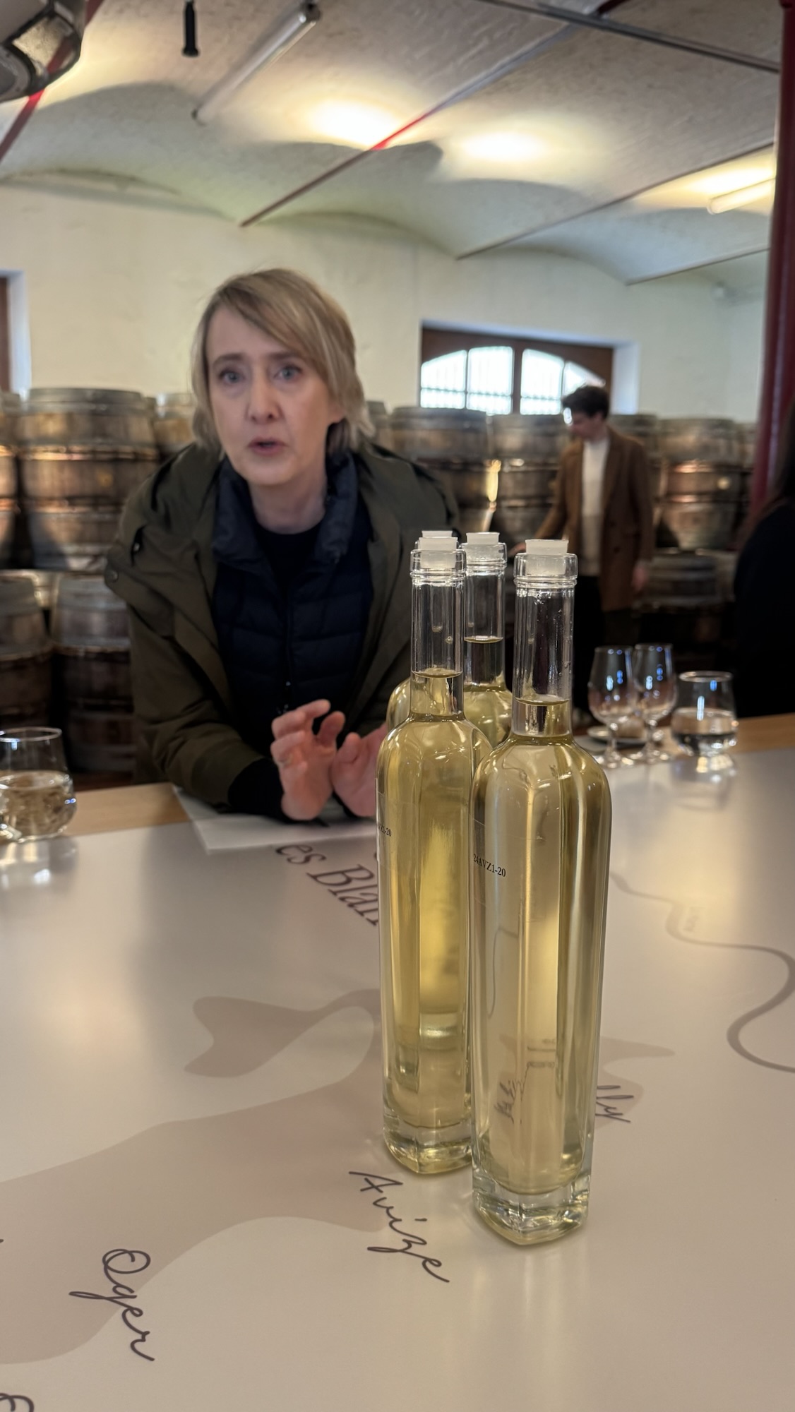Le troisième, récolté le 21 septembre, surprend par un profil presque à contre-courant : fruits blancs, poire, bourgeon de cassis, une expression éthérée qui évoque presque le sauvignon, avec une longueur légèrement plus courte que les deux précédents. Trois vins clairs issus de parcelles récoltées en l’espace de 5 jours, trois vins radicalement distincts.